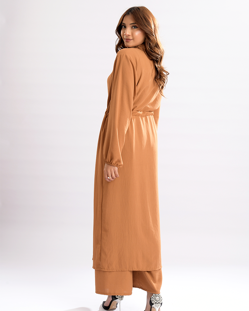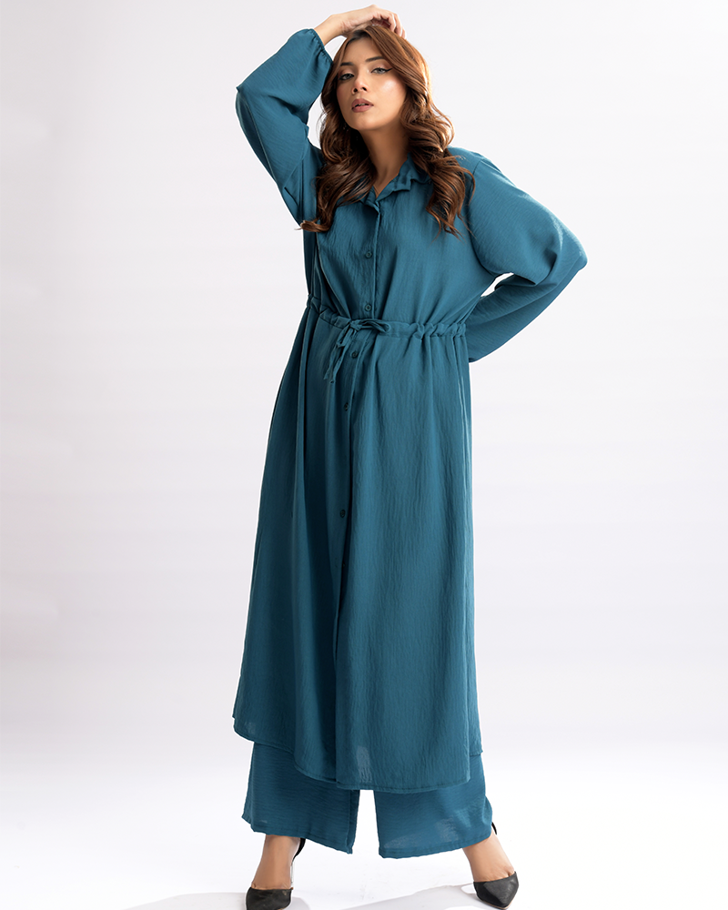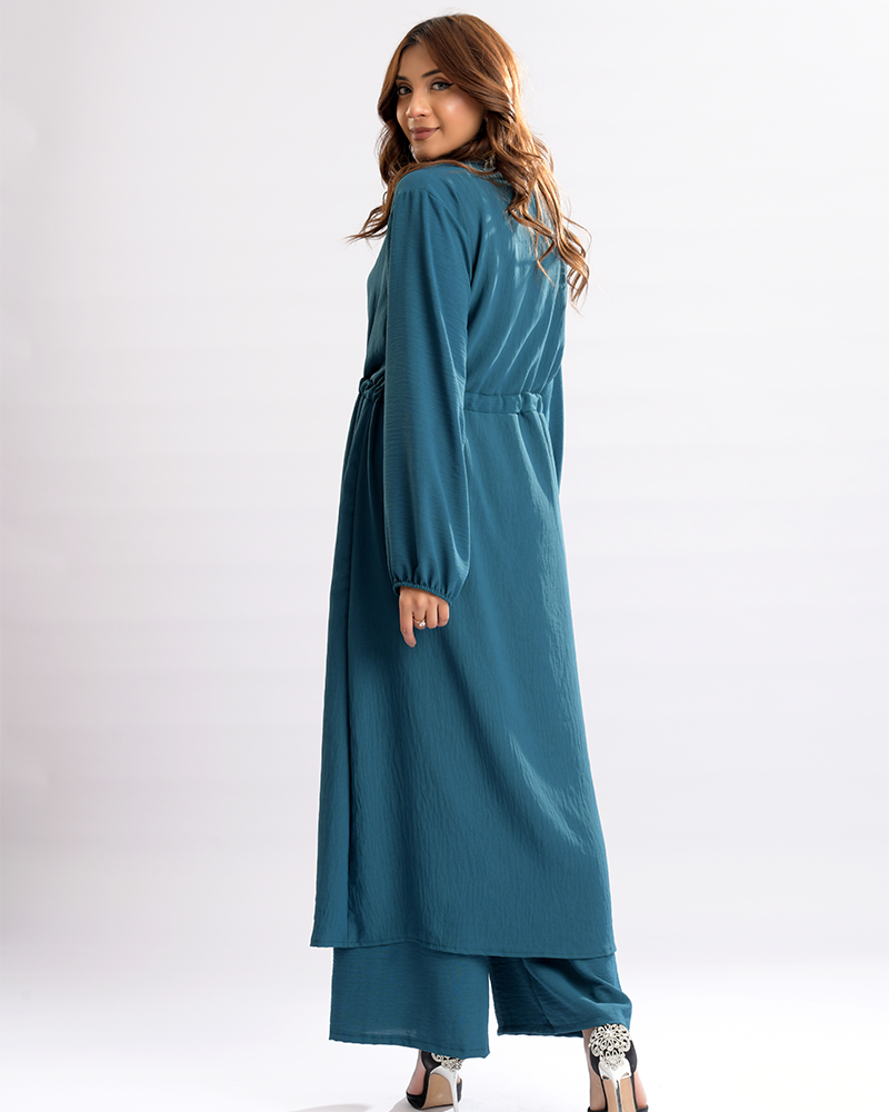 The dress pairs seamlessly with matching loose trousers, ensuring comfort without compromising on fashion. Completing the ensemble are the fashion-forward balloon sleeves, adding a playful yet refined flair to the overall aesthetic. Elevate your wardrobe with the Chic Collar Ensemble, where every detail is meticulously crafted for the woman who values both grace and contemporary appeal.
