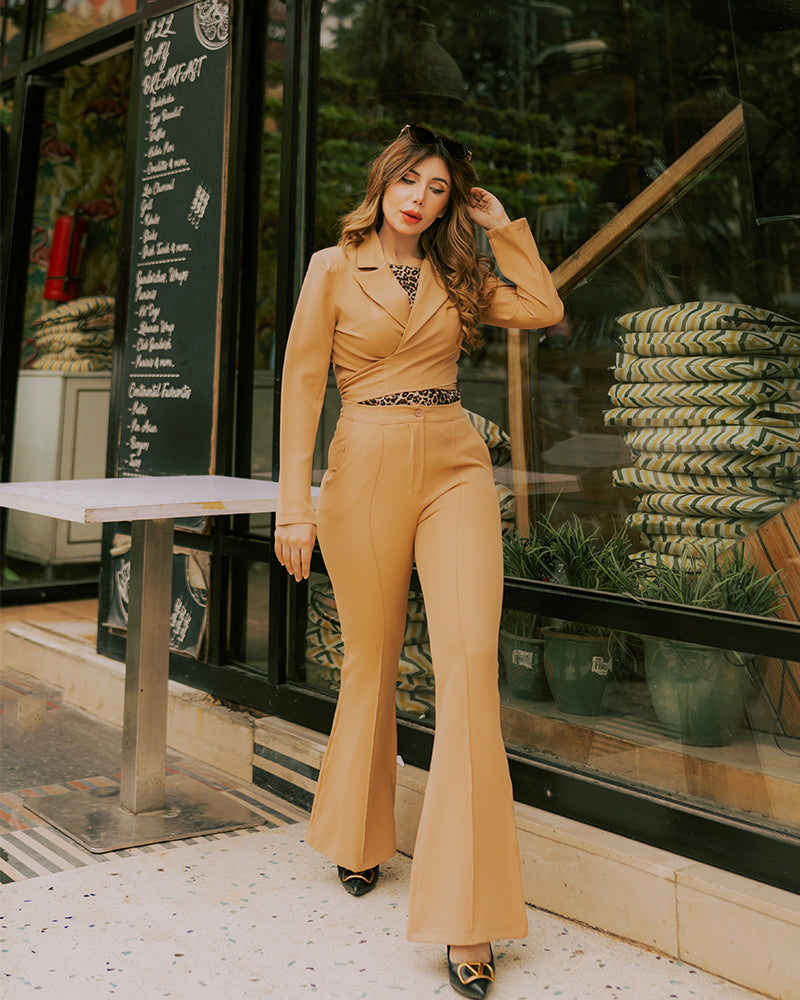 Step into the world of our High Waist Boot Pants and Short Coat Set, where rustic charm meets contemporary style in a captivating tea pink hue. Embrace the allure of Western-inspired fashion infused with a modern twist, radiating confidence and elegance with every stride. This unique ensemble allows you to make a bold and chic fashion statement, epitomizing the spirit of urban sophistication with a touch of delicate color. Impeccably tailored, our collection showcases the finest craftsmanship, exclusively made in Germany by New Jersey. Elevate your wardrobe with this standout outfit, perfect for fashion-forward individuals seeking a seamless blend of classic and modern aesthetics with a soft and alluring hue.