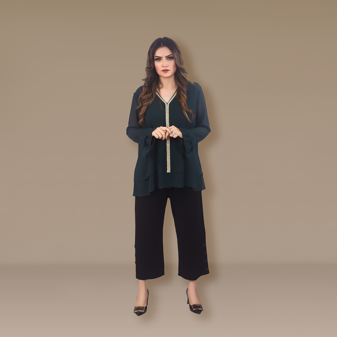 Introducing our "Luminous Vibe Top" – a seamless fusion of elegance and dazzle. This short top boasts a flattering V neckline that exudes allure, while the flared sleeves infuse a sense of movement and style. Designed in a solid color, it serves as a versatile canvas for various outfits. What truly sets the Luminous Vibe Top apart is the meticulously crafted rhinestone lace that delicately adorns the neckline, creating a captivating shimmer from the neckline to the chest's midpoint. This exquisite detail adds a touch of glamour and sophistication, making it perfect for both evening outings and daytime elegance. Embrace the allure of radiant grace with every wear.