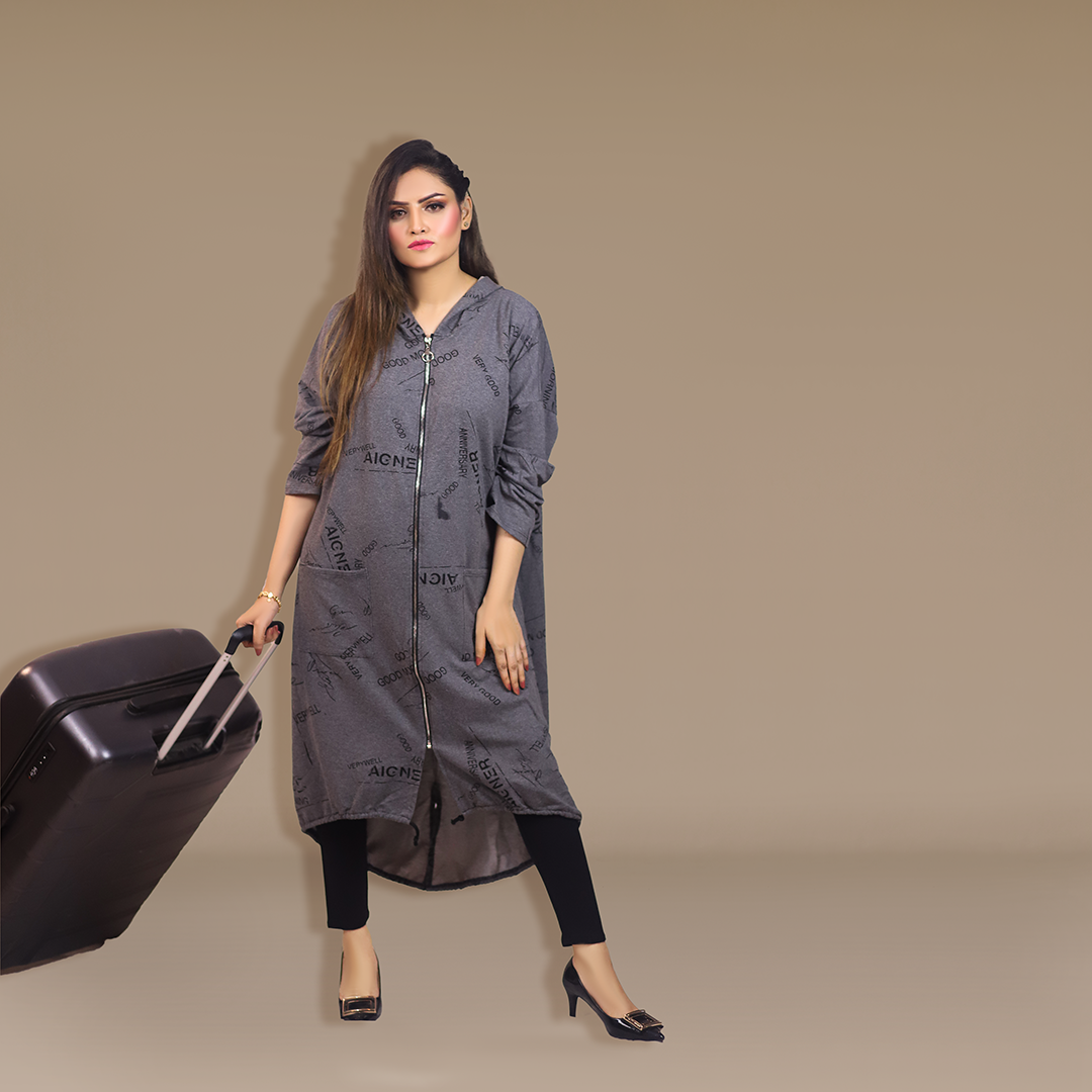 Presenting our "Canvas Chic Long Dress" – a sophisticated blend of style and comfort. This long dress features a front zip closure, adding a touch of modern flair to the classic design. The long fold sleeves provide an elegant touch, and the dress is adorned with tastefully written patterns on a plain canvas, creating a unique and eye-catching look. Embrace the charm of the Canvas Chic Long Dress, a versatile piece perfect for a variety of occasions, combining elegance with an artistic edge.