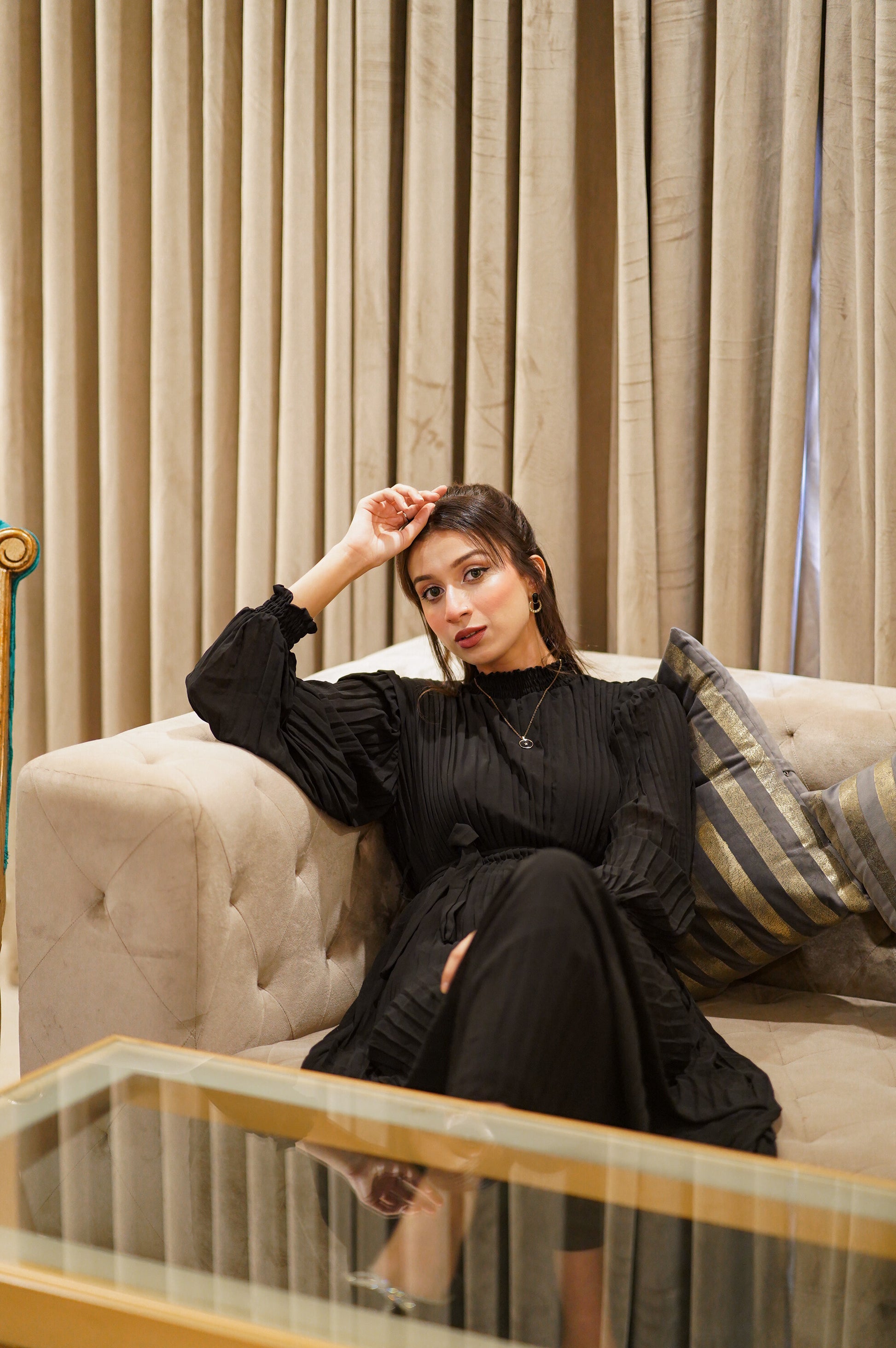 "Sophisticated Solace" Dress - Step into a world of timeless elegance with this exquisite dress. The regular collar and long balloon sleeves exude grace, while the two-stitched round flares with an upper blouse create a flattering and feminine silhouette. Delicate button detailing under the collar adds a touch of sophistication to the overall design. Crafted in a solid color, this versatile and charming outfit is perfect for any occasion, whether it's a formal event or a casual gathering. Elevate your style with this must-have addition to your wardrobe and make a lasting impression with "Sophisticated Solace."