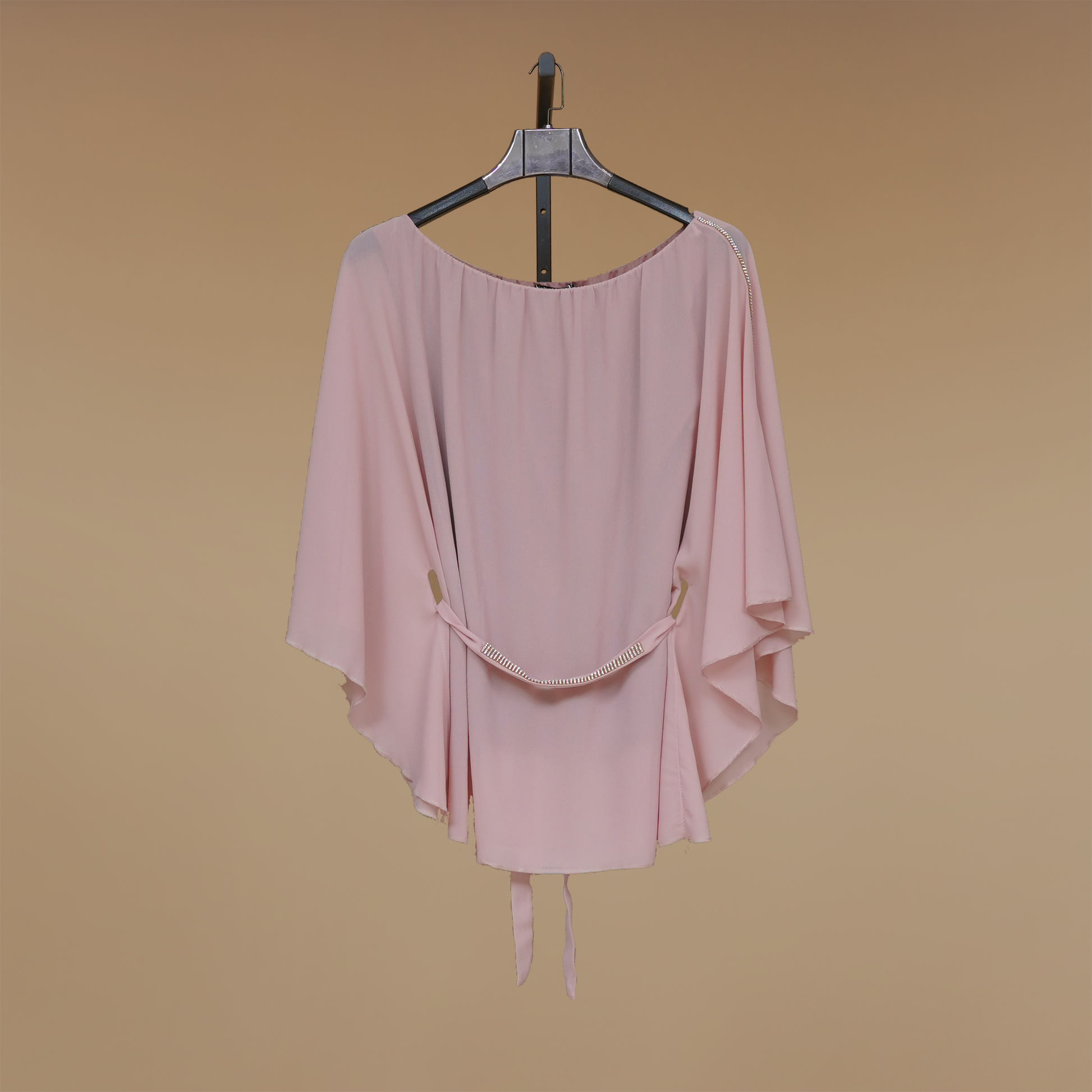 Experience the charm of the Butterfly Grace Top as it effortlessly elevates your wardrobe. The butterfly cut style, flared design, and waist belt create a fusion of modernity and classic elegance. Perfect for various occasions, it's an embodiment of timeless charm with a hint of glamour.