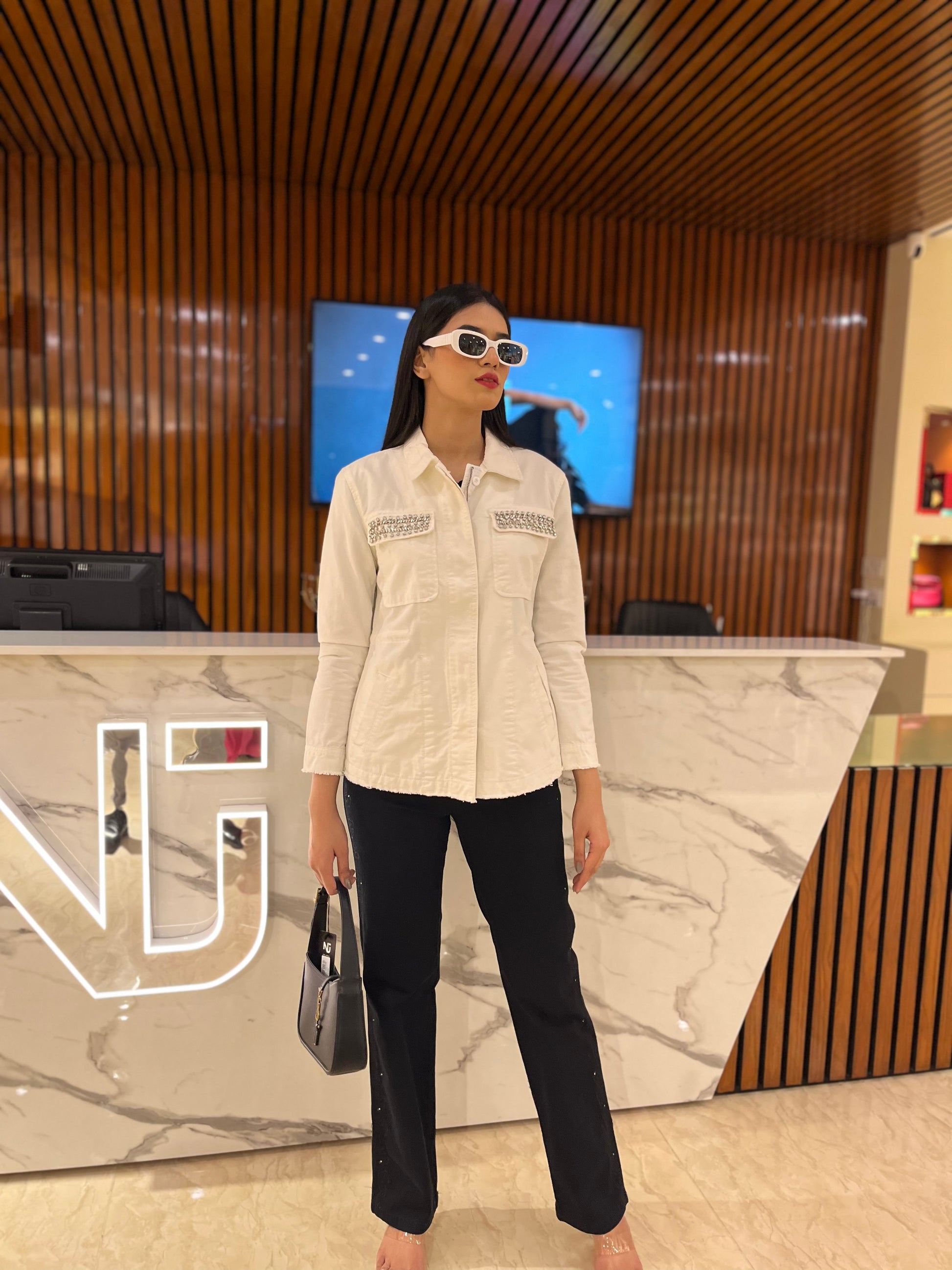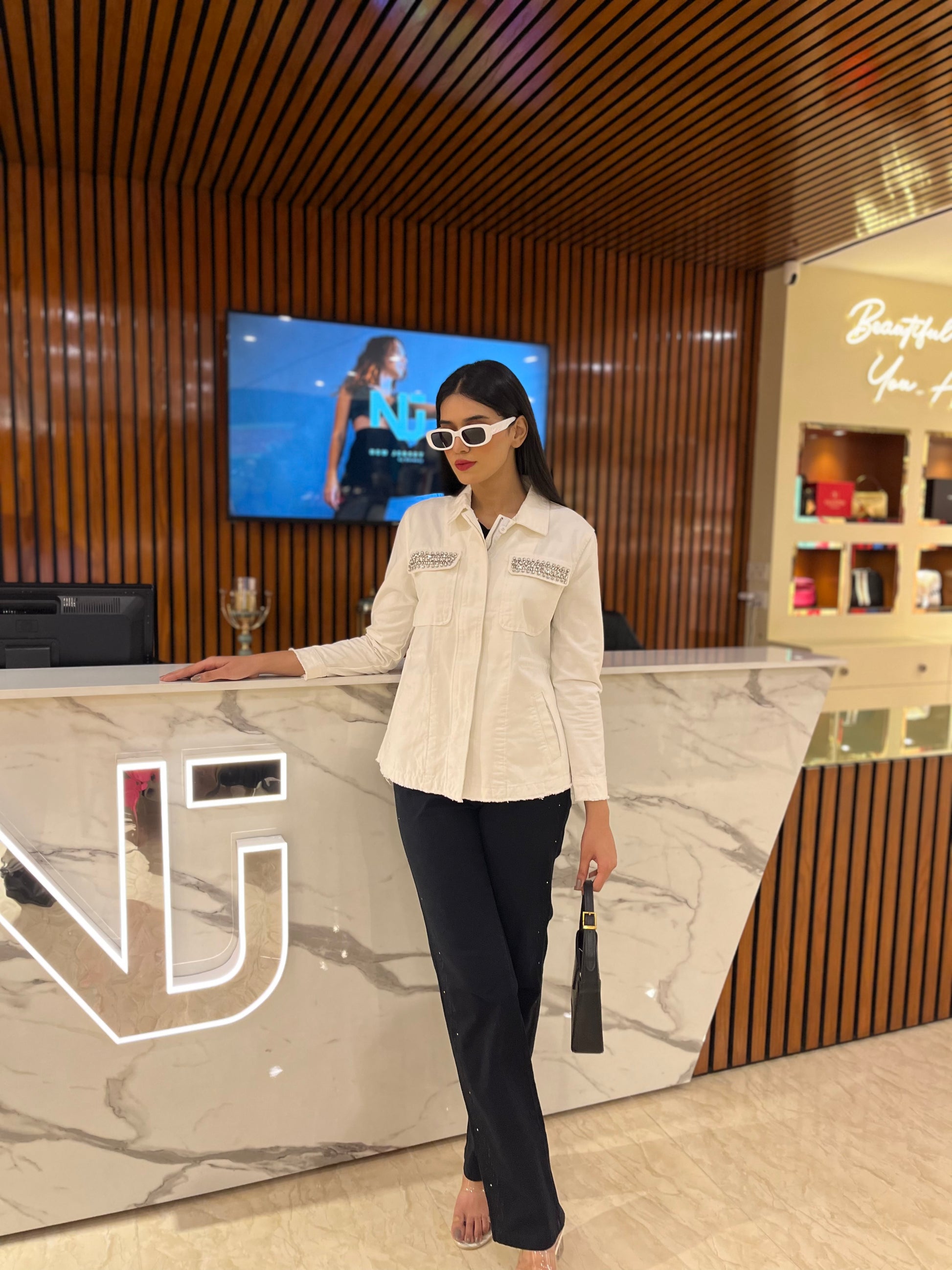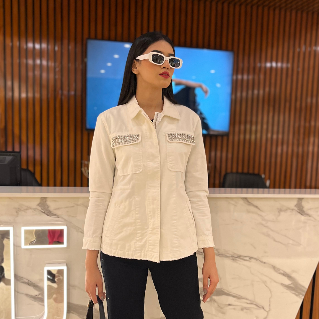 This white dress Jacket features two pleated chest pockets, with a flattering fit. It also offers a classic shirt collar and is designed with style in mind, great for everyday wear.
